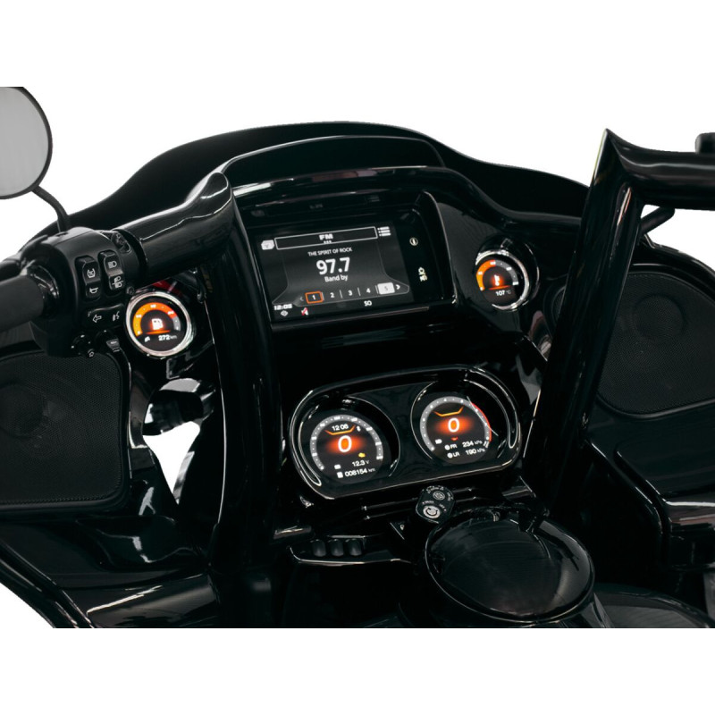 - Pour accéder aux réglages sur les modèles CVO, activez l’interrupteur marche/arrêt afin que la moto reste allumée. Procédez ensuite aux réglages sur l’instrument.