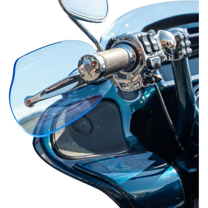 - Non compatible avec les modèles Sportster '04-'13 sans cales, les modèles Sportster '04-'23 avec supports de rétroviseurs décalés ou les Sportster équipés de rétroviseurs embout de guidon.