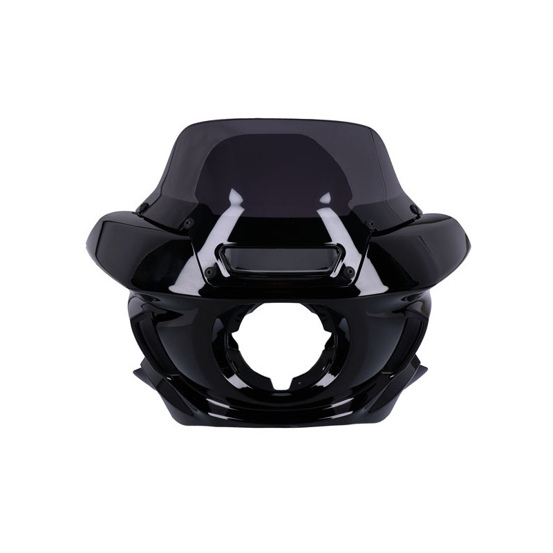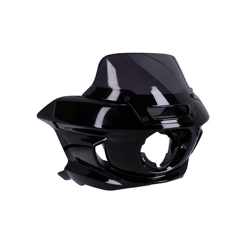 MCSOEM style unpainted gloss black ABS Low Rider fairing; with tinted windshield. OEM replacement references 57001562 fairing; 57300375 miscellaneous bodywork seal; 11100285 isolation pad air duct; 57400587 windshield assembly. Note: See 998289 fairing bracket mount kit; which must be purchased separately.