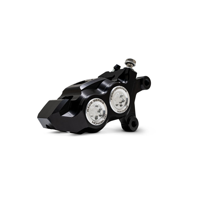Performance MachineClear anodized finish. CNC machined from a single piece of solid billet aluminum. The four differential bore large diameter pistons; combined with the extra rigidity of a monobloc design; provide a staggering 20% increase in stopping power over OEM calipers. Race Series machined billet bore caps with anodized finish and laser engraved Performance Machine logo provide additional style to go with the substantial performance upgrades. - One-piece monobloc construction provides increased braking performance - 4-piston differential bore - 20% better stopping power over OEM calipers - Compatible with ABS and Non-ABS brake systems - Works with OEM or aftermarket master cylinders - Anodized finish for all weather protection - With ''Perf