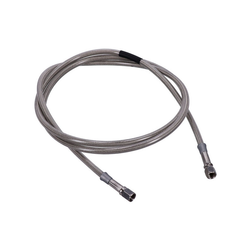 MCSPre-fabricated brake line kit with approval. Designed for use in all custom and stock applications. Manufactured with chrome plated (female 3/8"-24 AN-3) hose ends. Excellent pressure resistance. Brake line nipples are sold separately.Note: Brake line length represents the brake line length from inverted flare hose end to inverted flare hose end; without adding the length of the hose end nipple. - Clear coated stainless steel. - 68" / 173 cm longNote: Check your local MCS dealer or the MCS sales department for exact type of approval and validity on bike model and years on the test report.
