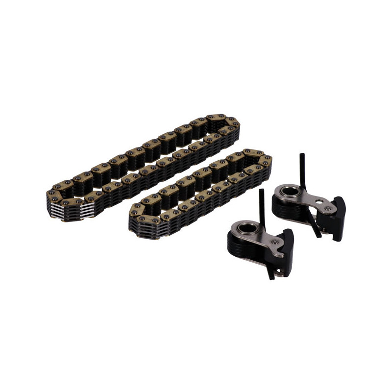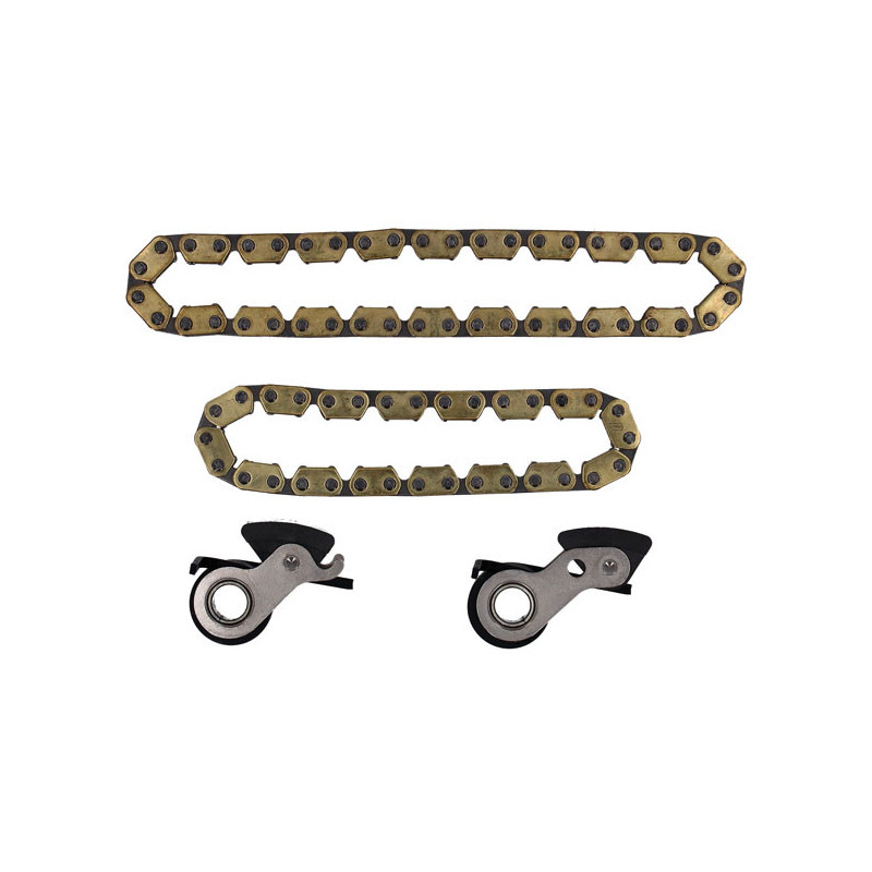 MCSOEM style replacement. Compatible with the early Twin Cam models equipped with spring loaded chain tensioners. Complete kit with cam tensioners and both cam chains. Kit includes 25607-99 (inner chain; secondary cam drive); 25610-99 (outer chain; primary cam drive); 39964-99A (chain tensioner; secondary cam drive) and 39954-99A (chain tensioner primary cam drive). Note: Does not include 39965-99 outer chain guide; which is separately available as 921174