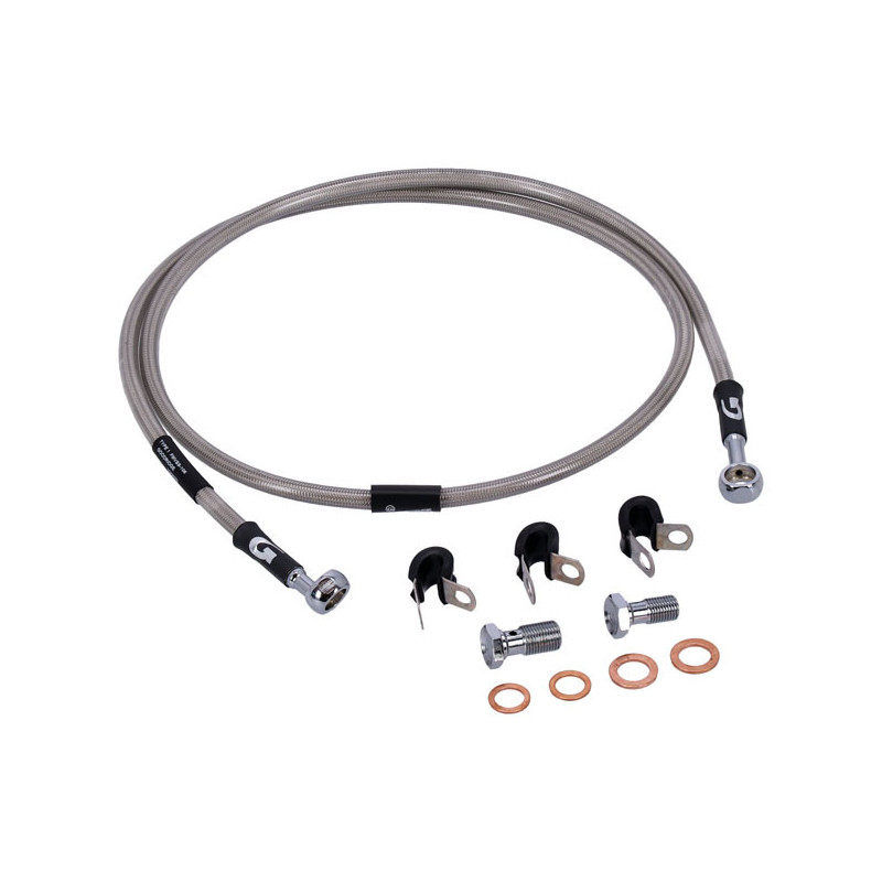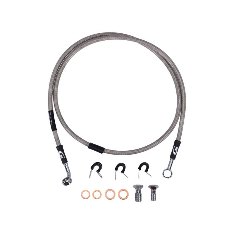 MCSStainless clear coated brake lines with high polished stainless steel hose ends. Ready to install; with correct length and fittings for stock applications.Note: With approval. Check your local MCS dealer or the MCS sales department for exact type of approval and validity on bike model and years on the test report.