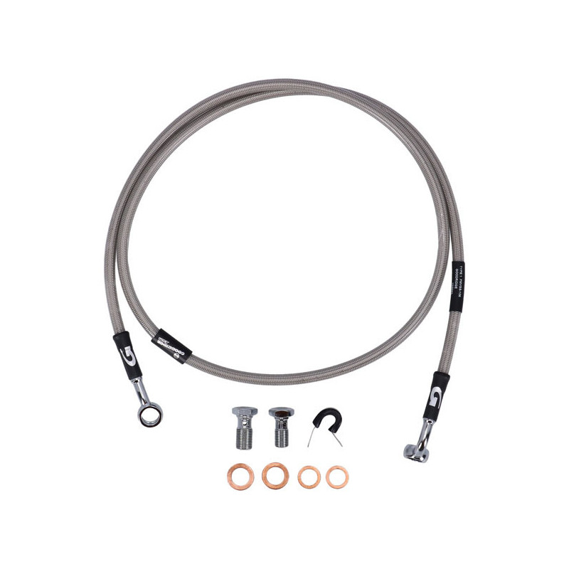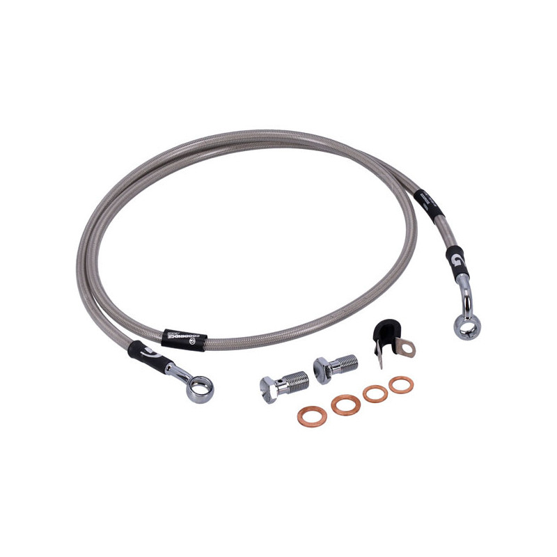 MCSStainless clear coated brake lines with high polished stainless steel hose ends. Ready to install; with correct length and fittings for stock applications.Note: With approval. Check your local MCS dealer or the MCS sales department for exact type of approval and validity on bike model and years on the test report.