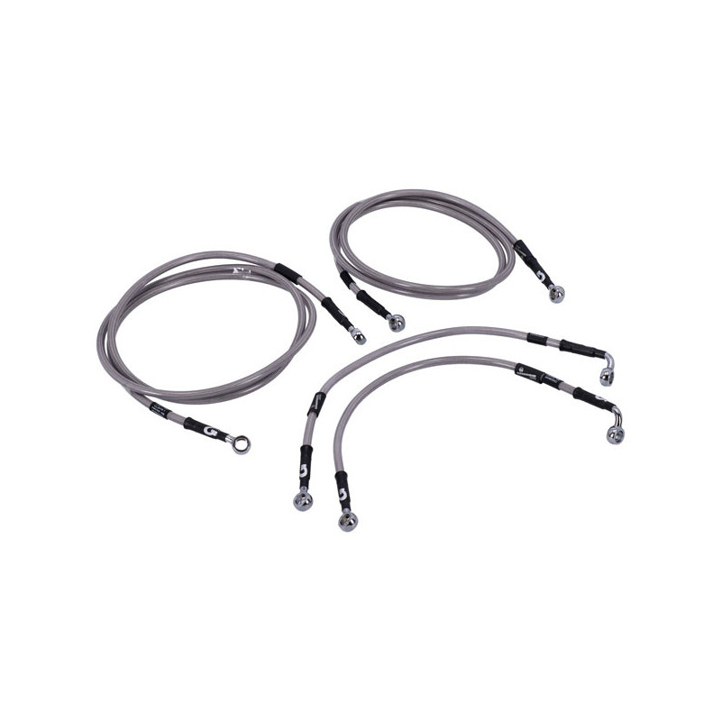MCSStainless clear coated brake lines with high polished stainless steel hose ends. Ready to install; with correct length and fittings for stock applications.Note: With approval. Check your local MCS dealer or the MCS sales department for exact type of approval and validity on bike model and years on the test report.