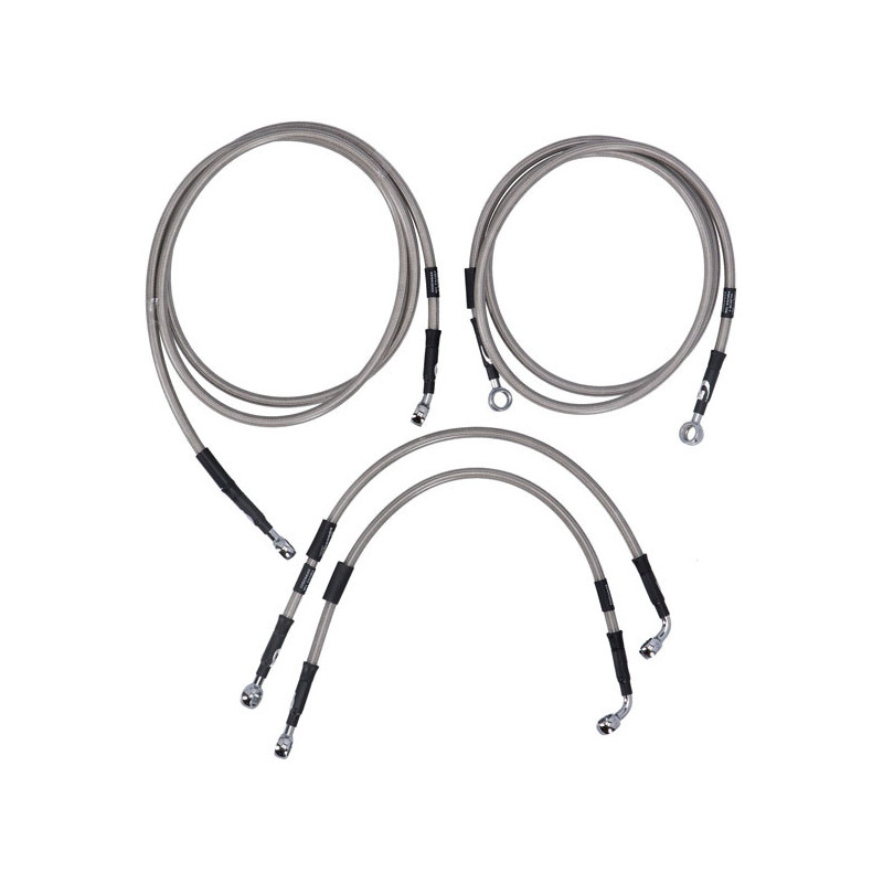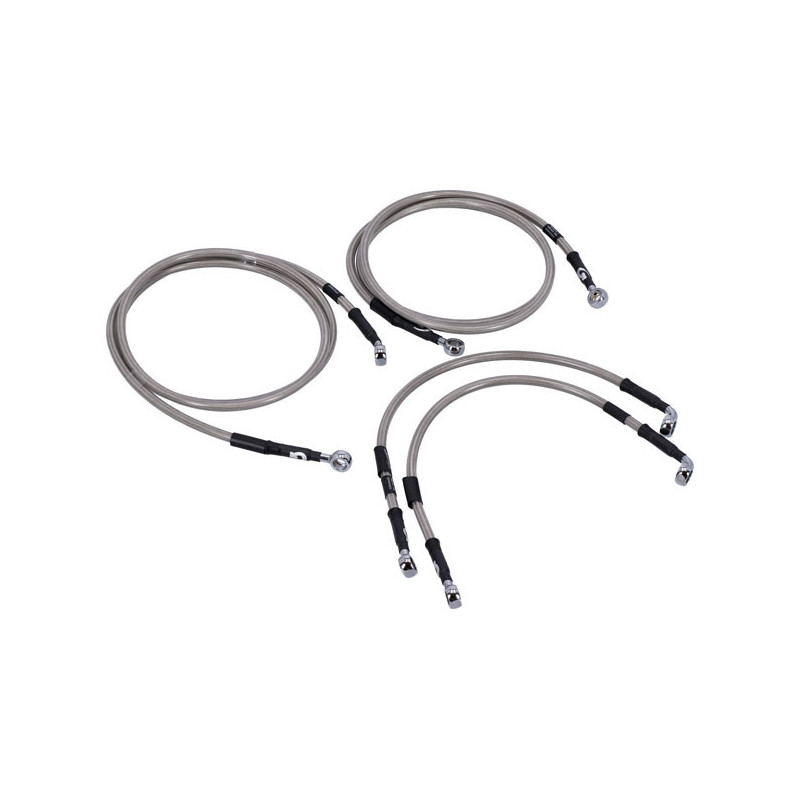 MCSStainless clear coated brake lines with high polished stainless steel hose ends. Ready to install; with correct length and fittings for stock applications. Note: Upper front (handlebar master cylinder) to ABS box + ABS box to brake caliper(s). Note: With approval. Check your local MCS dealer or the MCS sales department for exact type of approval and validity on bike model and years on the test report.