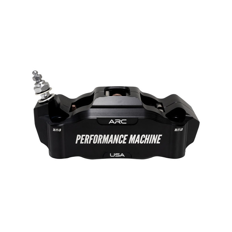 Performance MachineBlack anodized finish. 4-piston radial billet aluminum caliper. Universal fit for all 108mm sized radial caliper brackets and forks. Designed with ARC (Advanced Radiant Cooling) technology to improve your braking feel by providing more rigidity and maximum cooling efficiency for better heat control and ultimately to offer a better; crisp; brake feel. - Increased rigidity for improved braking performance- CNC machined billet aluminum - ARC Technology for maximum cooling efficiency- Designed for use with 5mm (.200") thick brake rotors - ABS and non-ABS compatible - Used with 108mm mounting bolt spacing brackets - Includes chrome mounting hardware - 4-piston caliper with 1.25" diameter pistons - Includes brake pads. Note: See 704595