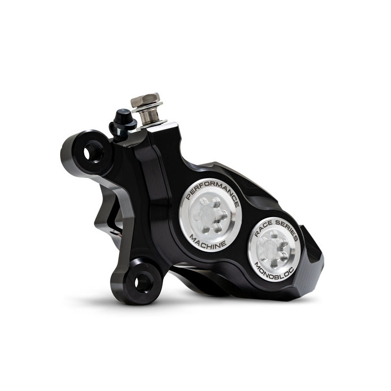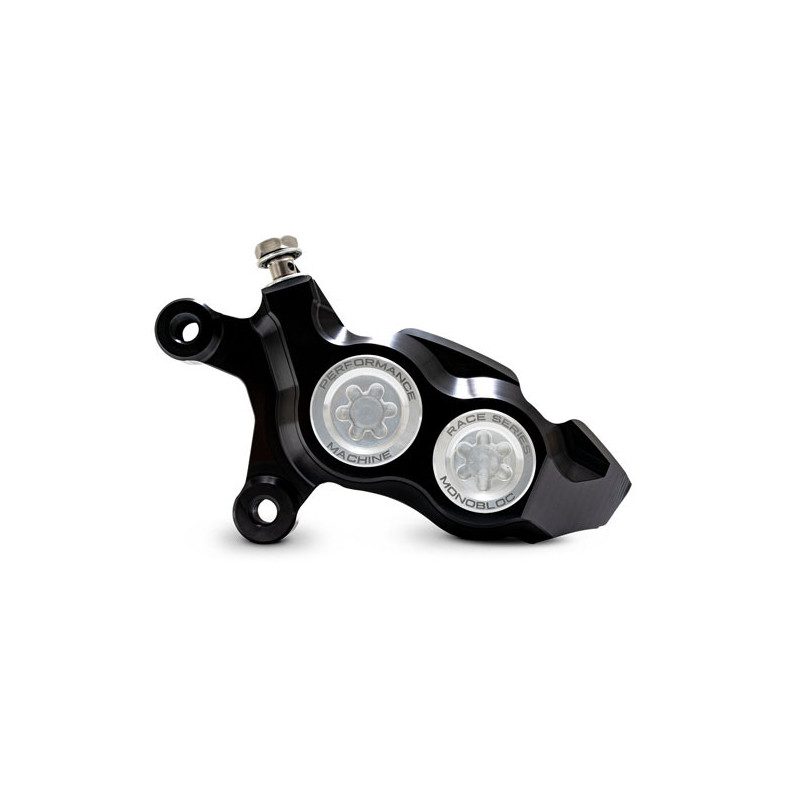 Performance MachineClear anodized finish. CNC machined from a single piece of solid billet aluminum. The four differential bore large diameter pistons; combined with the extra rigidity of a monobloc design; provide a staggering 20% increase in stopping power over OEM calipers. Race Series machined billet bore caps with anodized finish and laser engraved Performance Machine logo provide additional style to go with the substantial performance upgrades. - One-piece monobloc construction provides increased braking performance - 4-piston differential bore - 20% better stopping power over OEM calipers - Compatible with ABS and Non-ABS brake systems - Works with OEM or aftermarket master cylinders - Anodized finish for all weather protection - With ''Perf