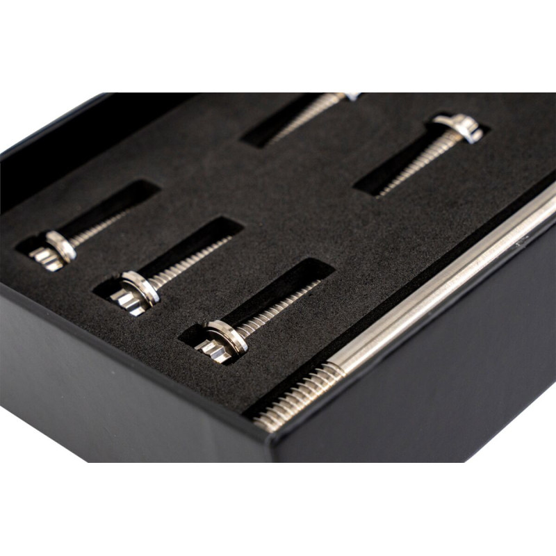 - Remplace l’origine par du titane Grade 5, offrant à votre M8 la solidité et la légèreté nécessaires pour rester stable sous contrainte