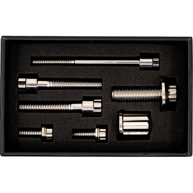 - Remplacement par des fixations en titane Grade 5 qui allègent, résistent à la corrosion et offrent un look précis et affûté